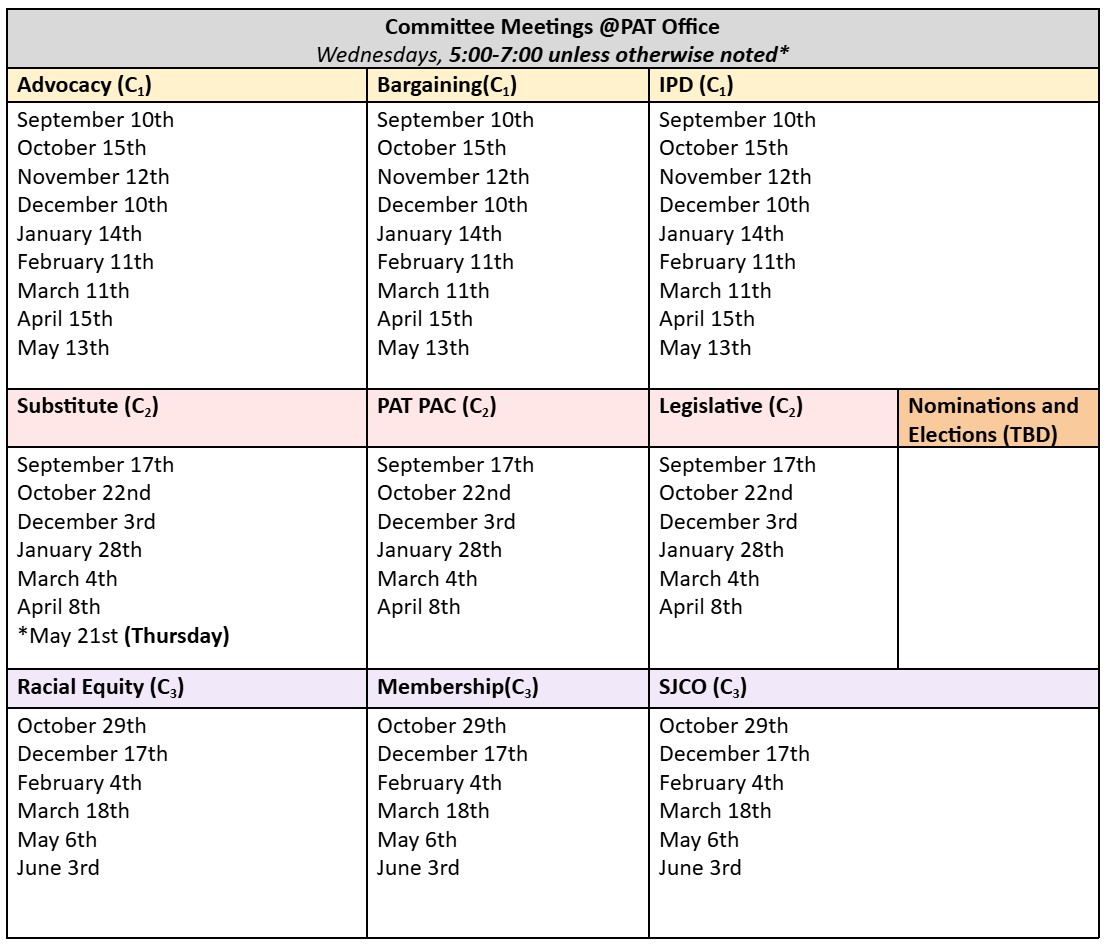 Want to get more involved in PAT? Check out the latest updates to PAT Committees, Task Forces and our PAT PAC below.